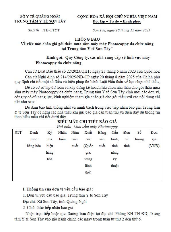 Đơn vị chủ quản : Trung tâm y tế Sơn Tây